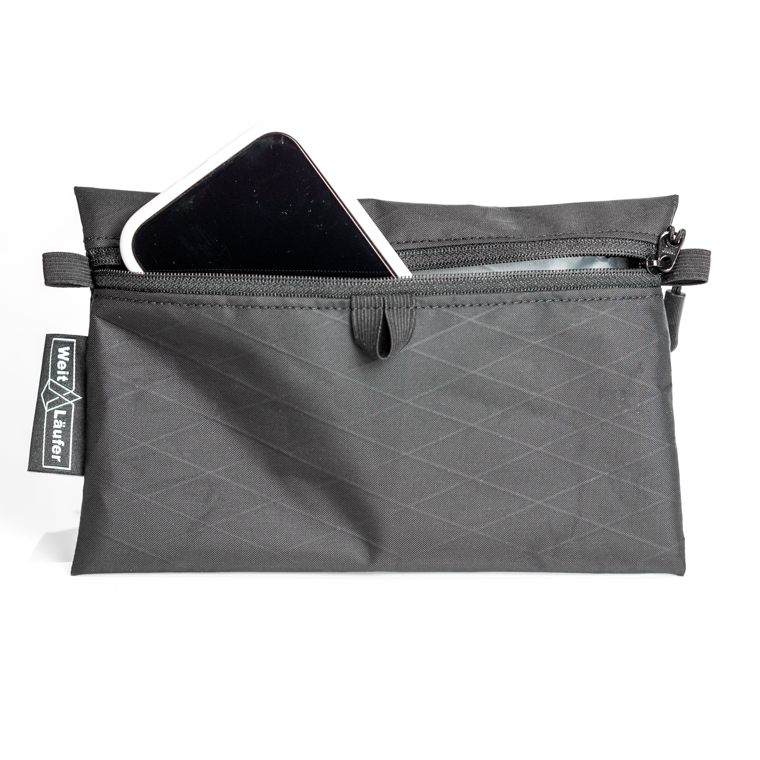 Die meisten aktuellen Smartphones sowie Kameras bis zur Größe einer Sony RX100 passen problemlos hinein. Kompatibel mit allen WeitLäufer Rucksäcken – und jedem Hüftgurt bis 60 mm Breite.