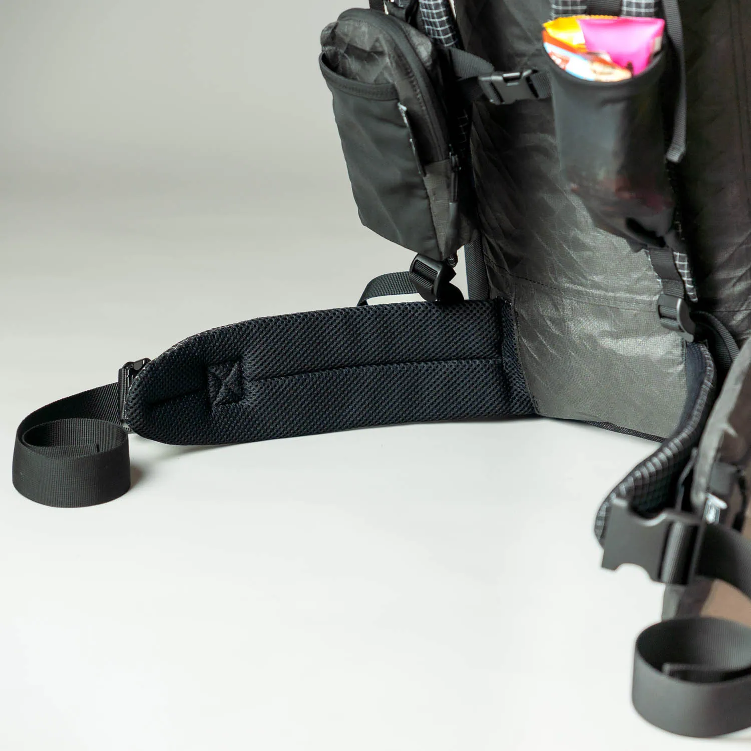 Der Rucksack besitzt ab Werk keine Hüftgurttaschen. Es können aber ultraleichte Gurttaschen bestellt werden, die auf dem Hüftgurt geschoben und fixiert werden können. Informationen zu den Hüftgurttaschen findest Du hier.