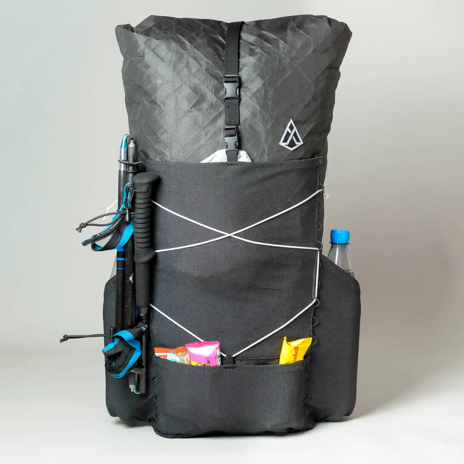 Mit einem Gesamtvolumen von ca. 54 Litern und flexiblem Rollverschluss ist der Agilist ideal für längere Touren. Die geräumige Fronttasche aus widerstandsfähigem Ultra Stretch fasst Regenjacke, Fleece oder Proviant; an der darüberliegenden Spannkordel kannst du feuchte Kleidung (Socken, Shirts) trocknen. Die tiefen Seitentaschen (ebenfalls Ultra Stretch) fassen jeweils zwei 1-Liter-Flaschen oder Platz für Handschuhe, Brillenetui oder andere Ausrüstung – erreichbar auch während des Gehens.Komfort-Upgrade & Tragesystem